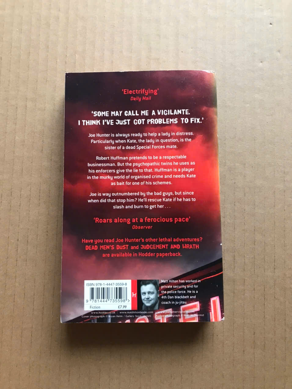 The third action-packed thriller in the compelling series featuring Joe Hunter, rival to Lee Child's Jack Reacher.Joe Hunter is always ready to help a lady in distress.Particularly when Kate, the lady in question, is the sister of a dead Special Forces mate. Robert Huffman pretends to be a respectable businessman. But the psychopathic Bolan twins he uses as his enforcers give the lie to that. Huffman is a player in the murky world of organised crime and needs Kate as bait for one of his schemes.Joe is way outnumbered by the bad guys, but since when did that stop him? He’ll rescue Kate if he has to slash and burn to get her …