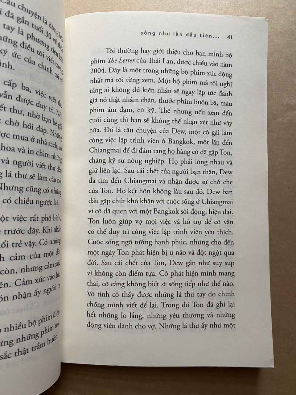 “Cuộc sống là muôn hình vạn trạng, có đẹp có xấu, có hay có dở. Chúng ta sẽ lần lượt được thưởng thức các hương vị ấy trong đời mình. Nếu cuộc sống là một bàn tiệc, thì sẽ có đủ vị cay, đắng, ngọt, bùi, chua và cả những vị kỳ lạ bạn chẳng thể gọi tên. Mỗi người chúng ta gặp, mỗi chuyện chúng ta làm cũng như một màu sắc sẽ góp phần vào bức tranh ghép đang dần được hoàn thiện. Nếu như bạn thử nhìn mọi thứ một cách chậm rãi, trầm tư hơn, bạn sẽ cảm nhận được những điều mà trước kia bạn chưa bao giờ nghĩ tới. Bạn sẽ biết thưởng thức cuộc sống ngay cả từ những điều bạn đã vô tình bỏ qua, từng không mang nhiều ý nghĩa với bạn. Rồi bạn cũng sẽ nhận ra mỗi người có một lý do riêng để sống, theo ý định của bản thân họ. Không một ai giống bạn và bạn cũng sẽ không giống một ai khác”.
