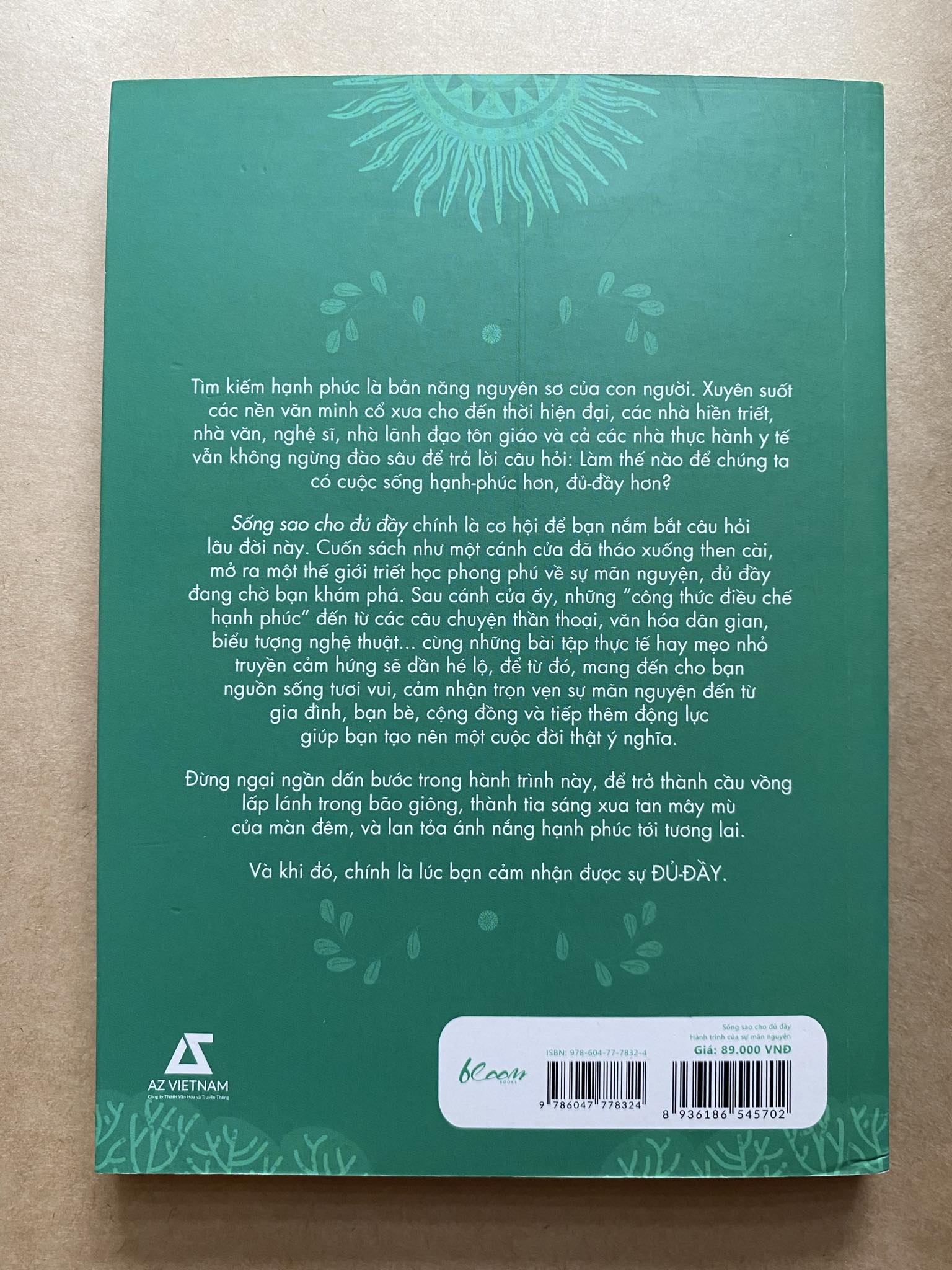 Sống sao cho đủ đầy chính là cơ hội để bạn nắm bắt câu hỏi lâu đời này. Cuốn sách như một cánh cửa đã tháo xuống then cài, mở ra một thế giới triết học phong phú về sự mãn nguyện, đủ đầy đang chờ bạn khám phá. Sau cánh cửa ấy, những “công thức điều chế hạnh phúc” đến từ các câu chuyện thần thoại, văn hóa dân gian, biểu tượng nghệ thuật... cùng những bài tập thực tế hay mẹo nhỏ truyền cảm hứng sẽ dần hé lộ, để từ đó, mang đến cho bạn nguồn sống tươi vui, cảm nhận trọn vẹn sự mãn nguyện đến từ gia đình, bạn bè, cộng đồng và tiếp thêm động lực giúp bạn tạo nên một cuộc đời thật ý nghĩa.