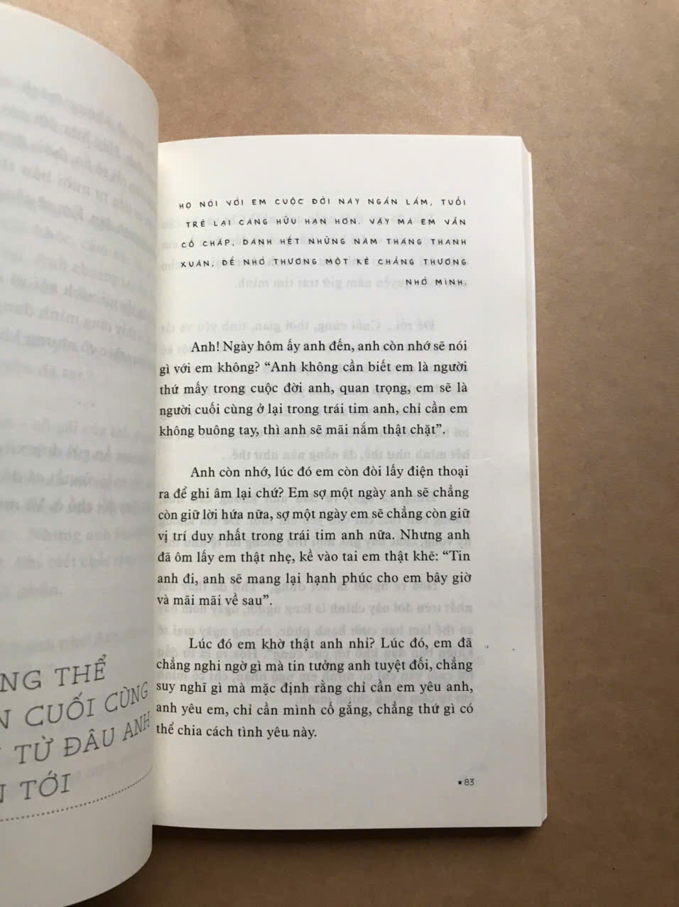 Điều đáng tiếc nhất của anh, đó là chỉ vì những vật chất hào nhoáng, những giây phút giây mù quáng, sa ngã mà đánh mất em.