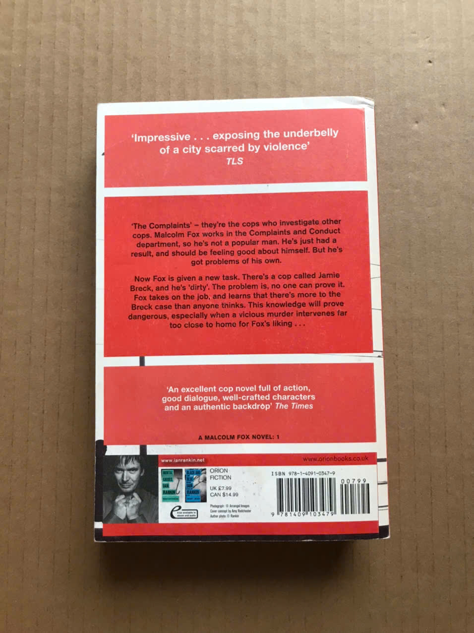 Nobody likes The Complaints - they're the cops who investigate other cops. Complaints and Conduct Department, to give them their full title, but known colloquially as 'the Dark Side', or simply 'The Complaints'. Malcolm Fox works for The Complaints. He's just had a result, and should be feeling good about himself. But he's middle-aged, sour and unwell. He also has a father in a care home and a sister who persists in an abusive relationship.