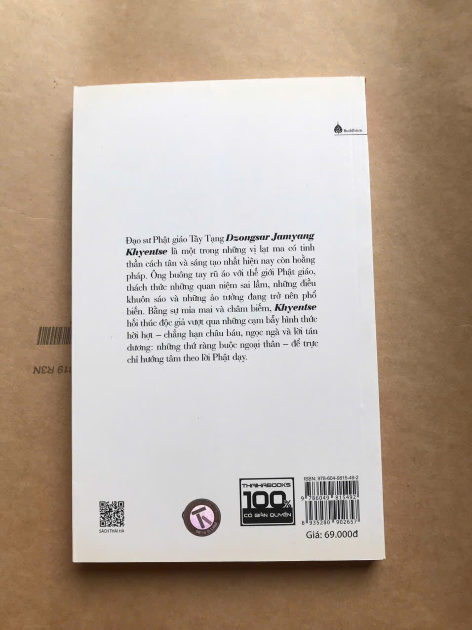 Xin hãy nghĩ lại. Đạo sư Phật giáo Tây Tạng Dzongsar Jamyang Khyentse là một trong những vị lạt ma có tinh thần cách tân và sáng tạo nhất hiện nay còn hoằng pháp. Ông buông tay rũ áo với thế giới Phật giáo, thách thức những quan niệm sai lầm, những điều khuôn sáo và những ảo tưởng đang trở nên phổ biến. Bằng sự mỉa mai và châm biếm, Khynentse hối thúc độc giả vượt qua những cạm bẫy hình thức hời hợt – chẳng hạn châu báu, ngọc ngà và lời tán dương: những thứ ràng buộc ngoại thân – để trực chỉ hướng tâm theo lời Phật dạy.