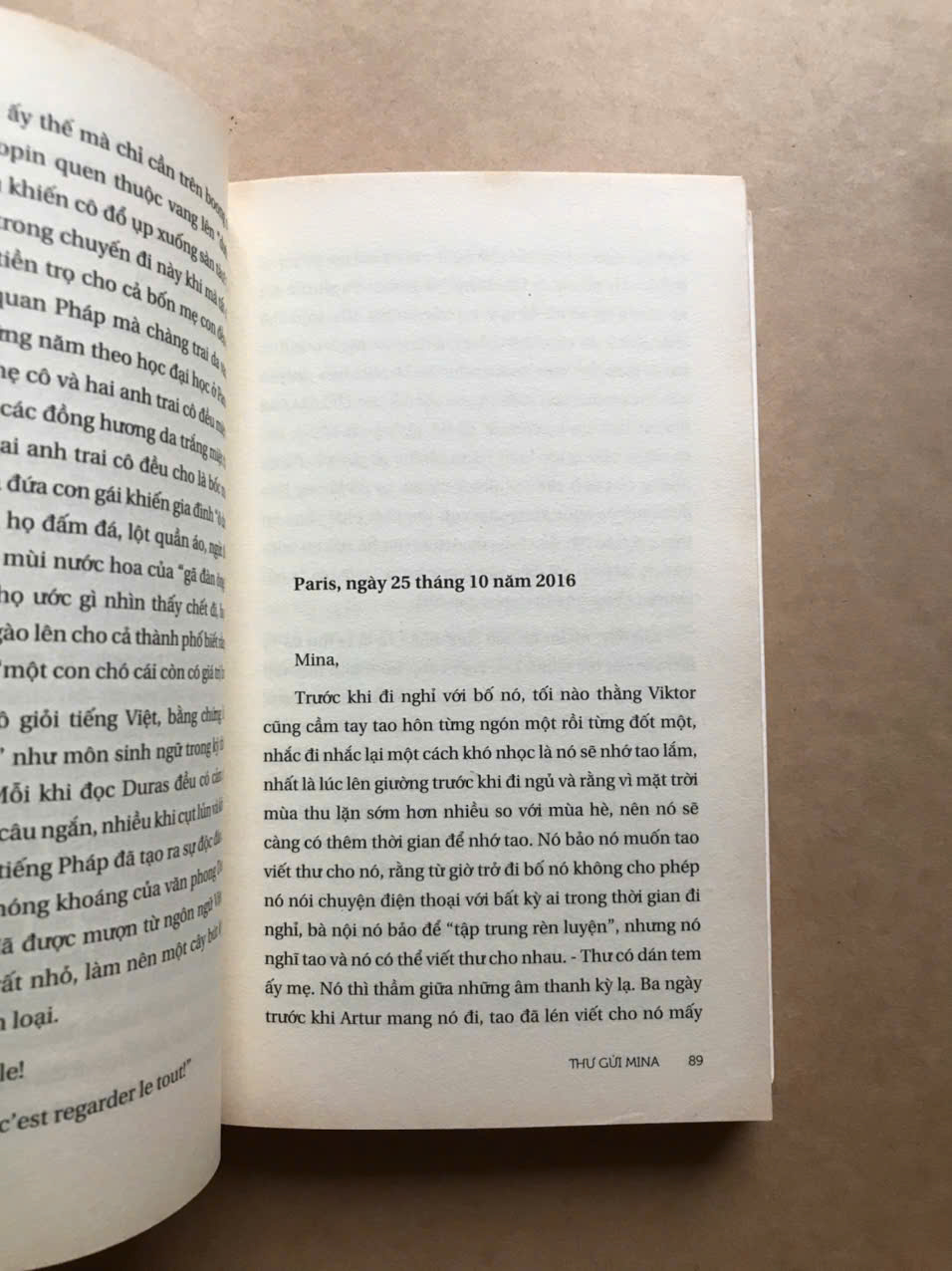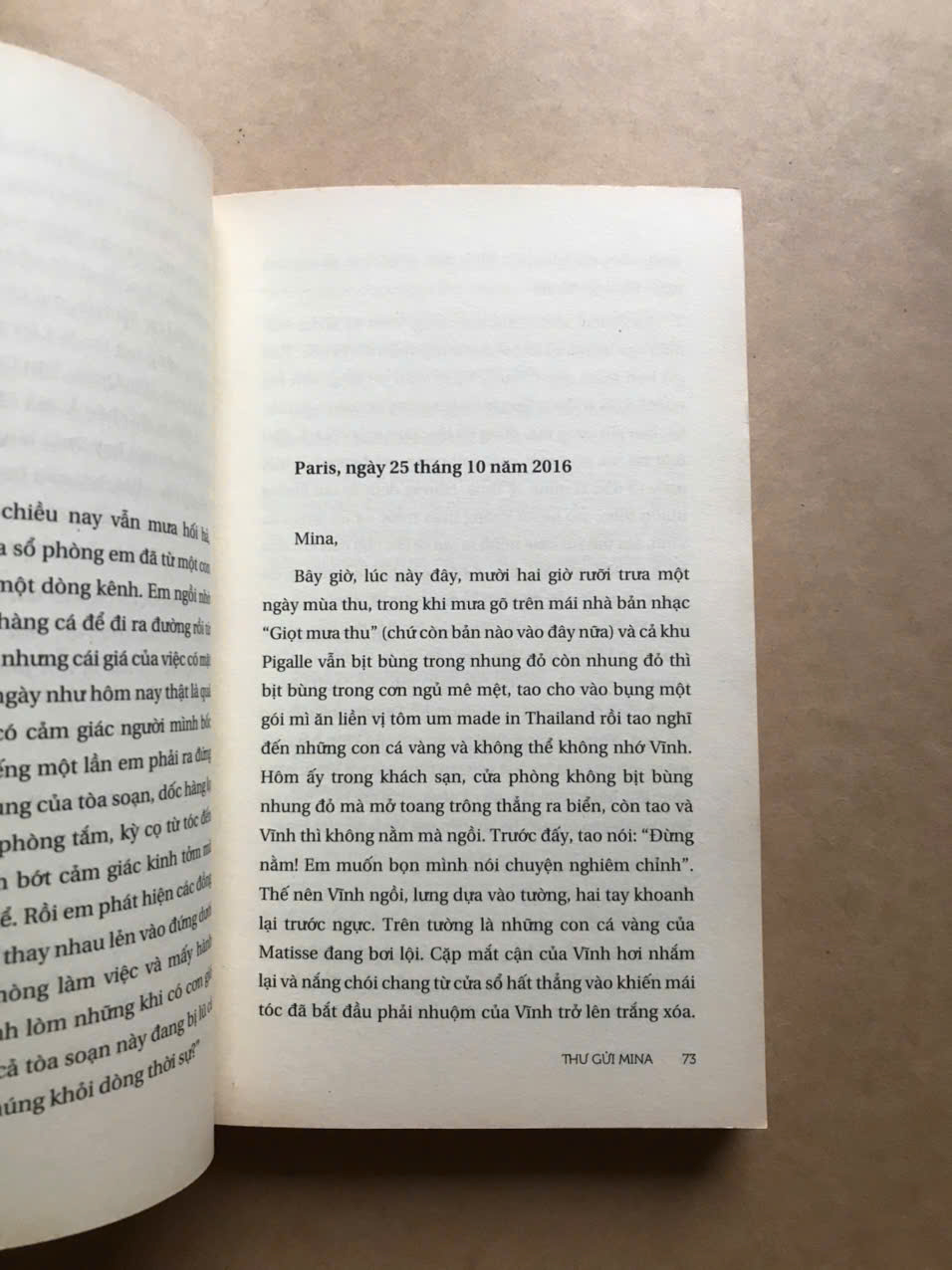 Mùa thu 2016, nhân vật chính, một nhà văn nữ gốc Việt sống ở Paris, đã quay lại căn phòng áp mái giữa khu Pigalle nóng bỏng từng chứng kiến những ngày đầu tiên cô đặt chân đến Pháp, để bắt tay vào một bản thảo mới. Nhưng thay vì theo đuổi một cuốn tiểu thuyết như việc mà cô vẫn làm, cô đã ngồi viết thư cho Mina một người bạn gái gốc Afghanistan mà cô đã mất liên lạc ngay sau ngày cả hai cùng tốt nghiệp đại học ở Nga.