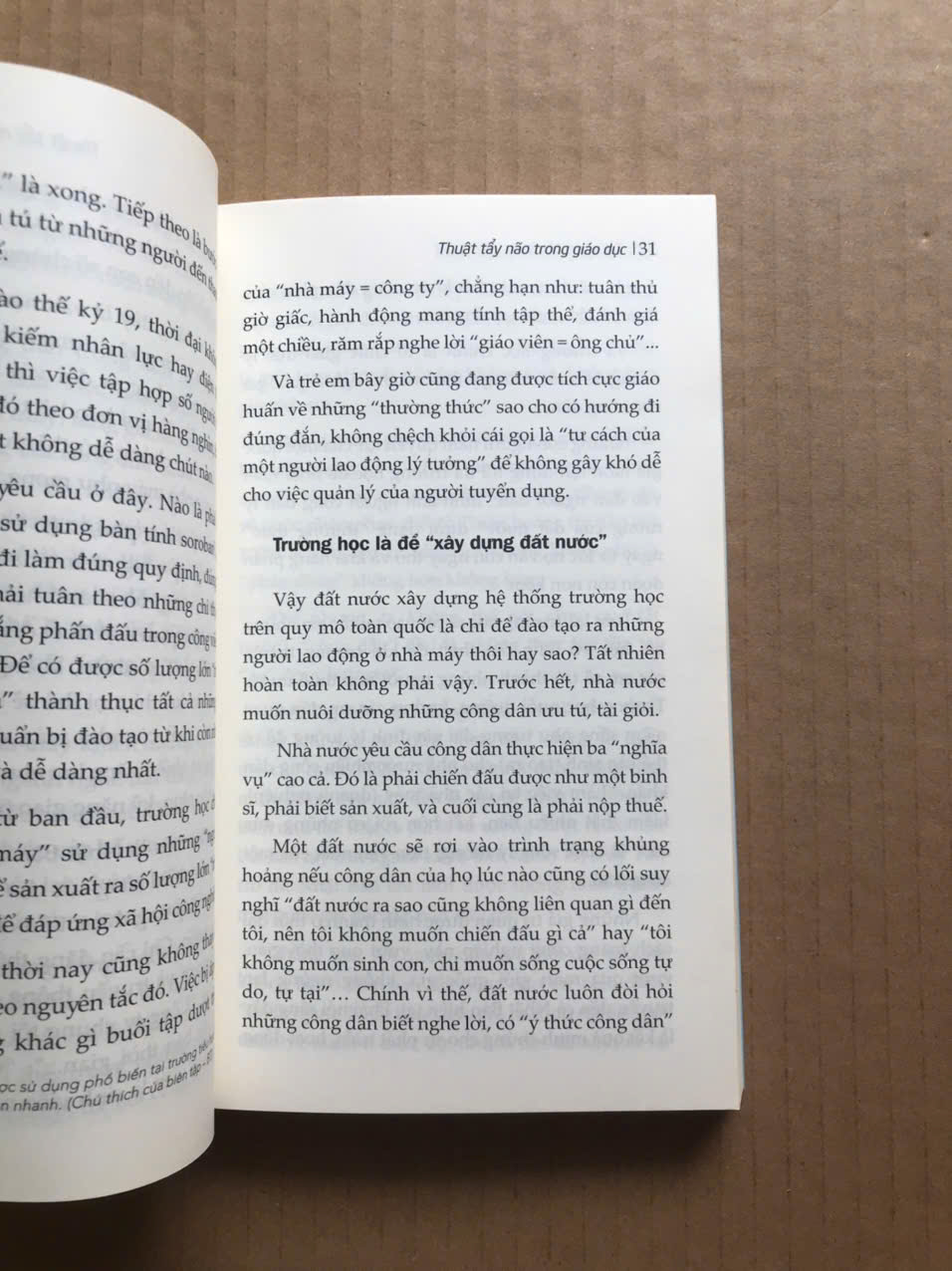 Đừng nghe những gì người khác áp đặt. Hãy tiếp thu kiến thức, những hãy dùng khối óc và trái tim của chính mình để quyết định con đường mình sẽ đi. Vì suy cho cùng, cuộc sống là của bạn và chỉ là của bạn mà thôi. Đừng sống bằng “não” của người khác, dù đó là bất cứ ai ngoài kia. Hãy đọc "Thuật tẩy não trong giáo dục" để chấm dứt việc làm một nạn nhân bị “tẩy não” mà vẫn cứ ngỡ rằng mình đang được tiếp thu kiến thức.