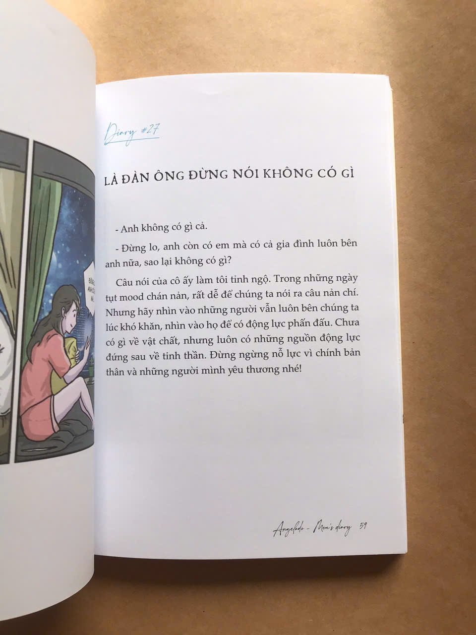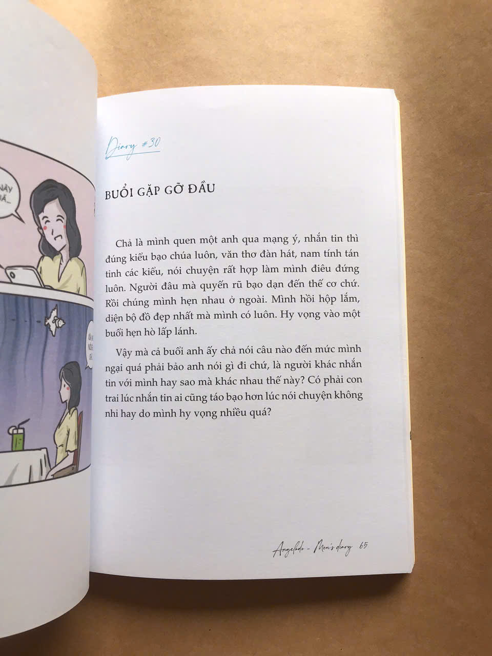 Tác giả cuốn sách - Angelado cũng là người sáng lập của fanpage Men’s diary - một “địa chỉ” quen thuộc để gửi gắm tâm tình, để xoa dịu hàng ngàn trái tim đang thổn thức bởi yêu bằng ngôn từ và nét vẽ của mình.