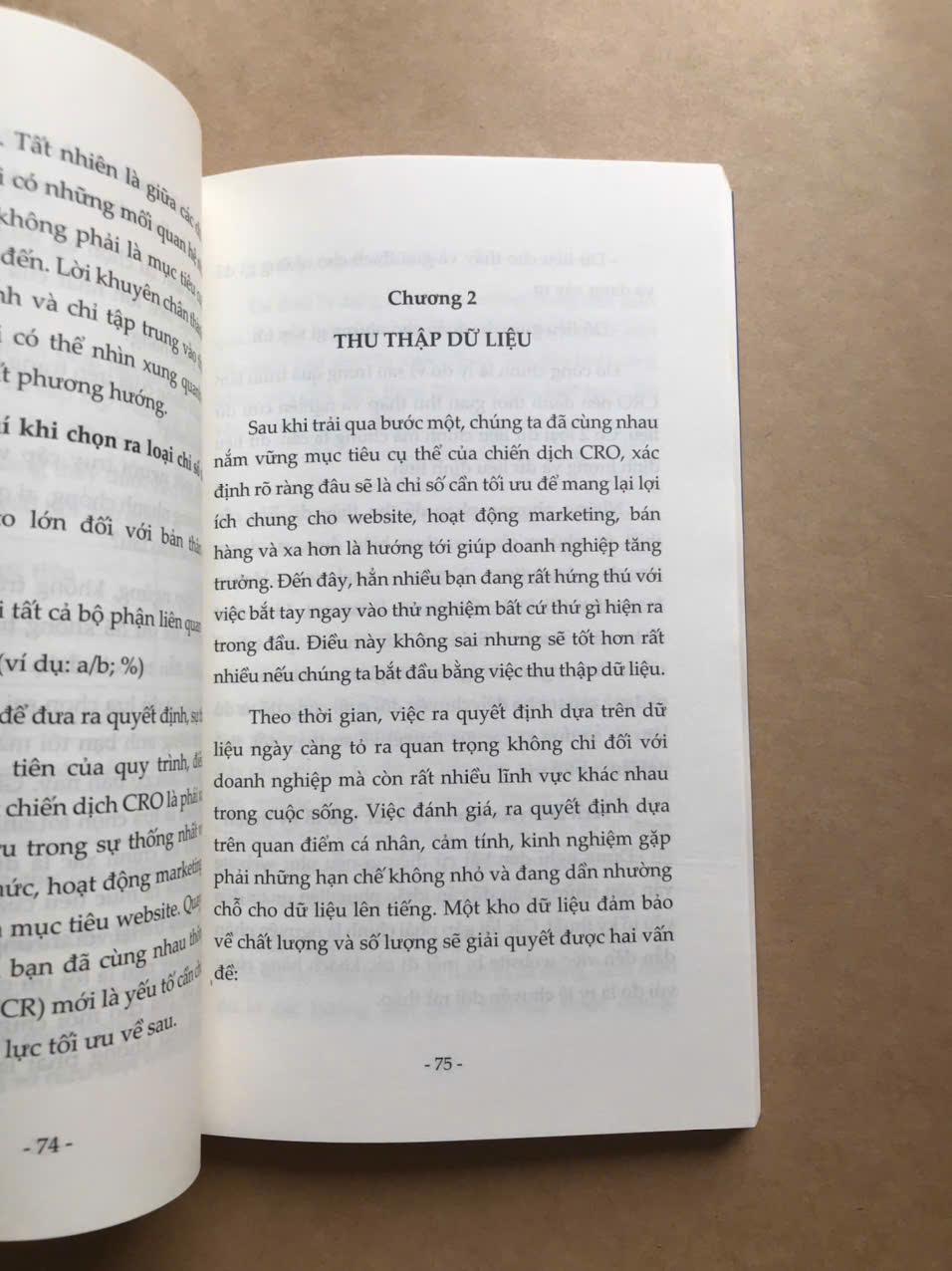Nó như một cuốn nhật ký nhỏ ghi chép và chia sẻ lại kiến thức đã học được, những trải nghiệm thực tế dưới góc độ của một người trong nghề, đưa ra cái nhìn tổng quan cho bất kỳ ai muốn tìm hiểu, muốn bước chân vào lĩnh vực Conversion Rate Optimization (viết tắt CRO). Những kiến thức cơ bản được đưa ra dưới nhiều góc nhìn sẽ giúp bạn tìm thấy cách thức để tối ưu hóa website, tối ưu hoạt động marketing, bán hàng và giúp doanh nghiệp mình tăng trưởng mạnh mẽ hơn. Cuốn sách gồm 4 phần chính lần lượt đi từ tổng quan về CRO, về quy trình các bước trong CRO cùng hơn 30 lời khuyên dành tặng bạn và những mối liên quan không thể thiếu về analytics, UX/UI, tâm lý học cũng như bài toán dữ liệu lớn.