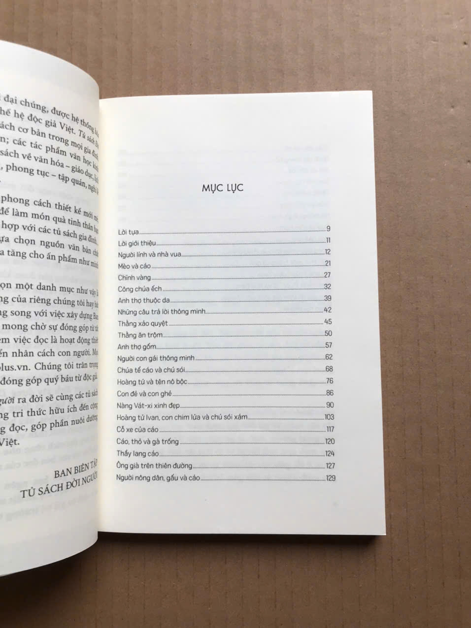 Tên một số truyện: Người lính và nhà vua; Mèo và cáo; Công chúa ếch; Nàng Vát-xi xinh đẹp; Hoàng tử I-van, con chim lửa và chú sói xám.