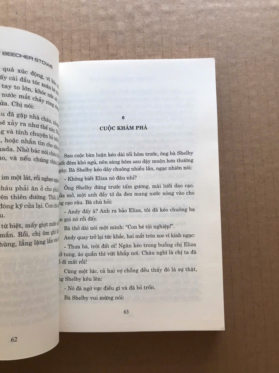 “Túp Lều Bác Tôm” là tiểu thuyết chống chế độ nô lệ của nhà văn Mỹ Harriet Beecher Stowe. Tác phẩm kể về cuộc đời thống khổ của một người nô lệ da đen là bác Tôm với chuỗi ngày đen tối. Bác phải lìa bỏ vợ con, bị bán từ nơi này sang nơi khác, bị đánh đập tàn nhẫn. Cuối cùng, do bảo vệ nhân phẩm của mình, bác bị đánh chết trong đồn điền trồng bông khủng khiếp của miền Nam nước Mỹ. Đây cũng là nơi chôn vùi bao cuộc đời lầm than như cuộc đời của bác. Tác phẩm cũng kể về số phận của Êlida - người mẹ đã mang đứa con của mình bỏ trốn, đã hy sinh tất cả để cứu con mình khỏi rơi vào tay một tên buôn nô lệ tàn ác…