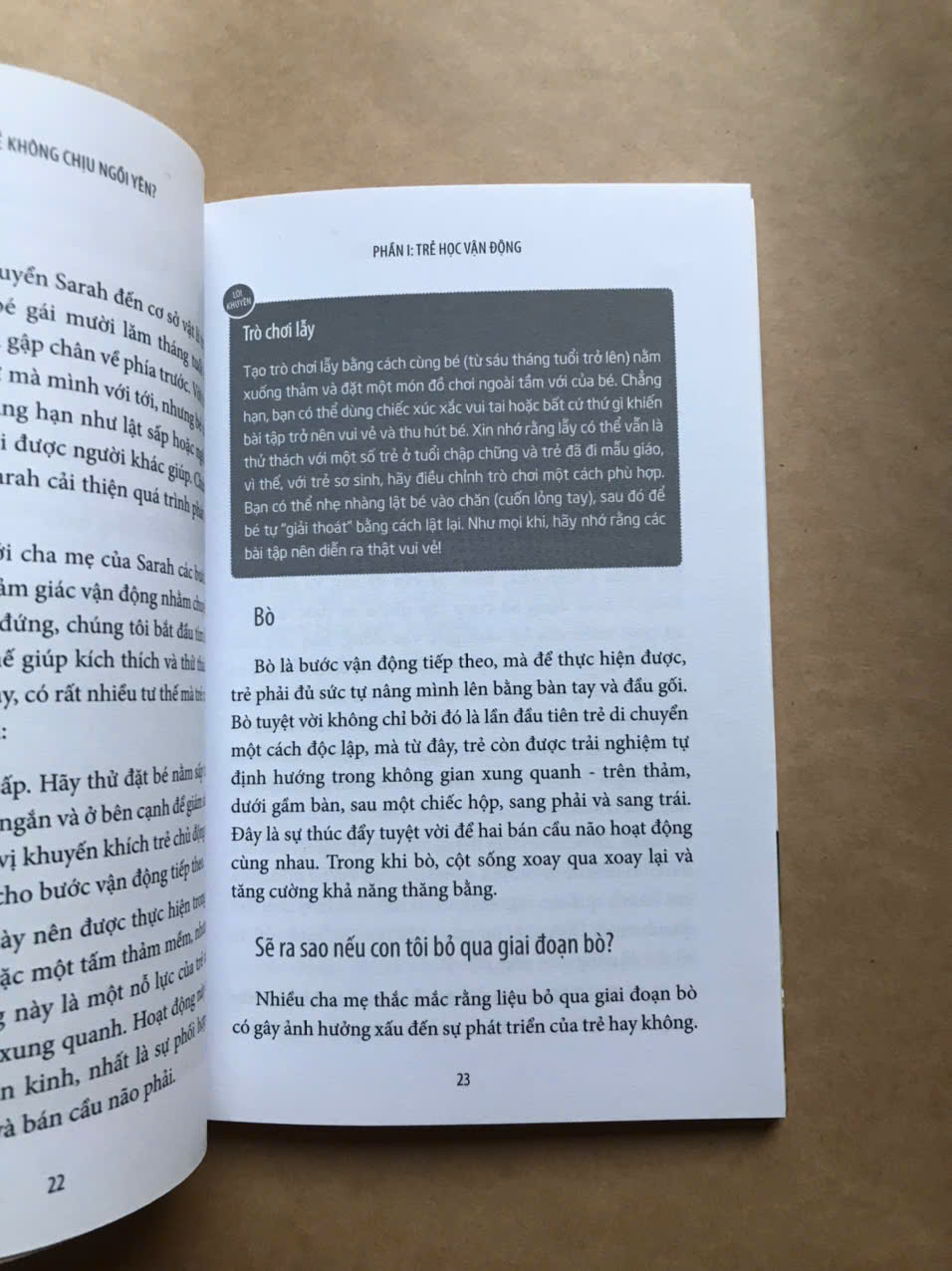 Vì sao trẻ không chịu ngồi yên? là cuốn sách giúp cha mẹ tìm hiểu vai trò của vận động và vui chơi đối với sự phát triển thể chất và trí tuệ của trẻ. Trong cuốn sách này, tác giả giải thích mối liên hệ giữa vận động và nhận thức. Sự kết hợp này chính là nền tảng cho sự phát triển của trẻ trên mọi phương diện.
